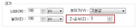 레이어의 순서는 Z 순서를 지정하여 조절할 수 있습니다. Z 순서는 숫자가 클수록 제일 앞 쪽에 위치하게 됩니다.